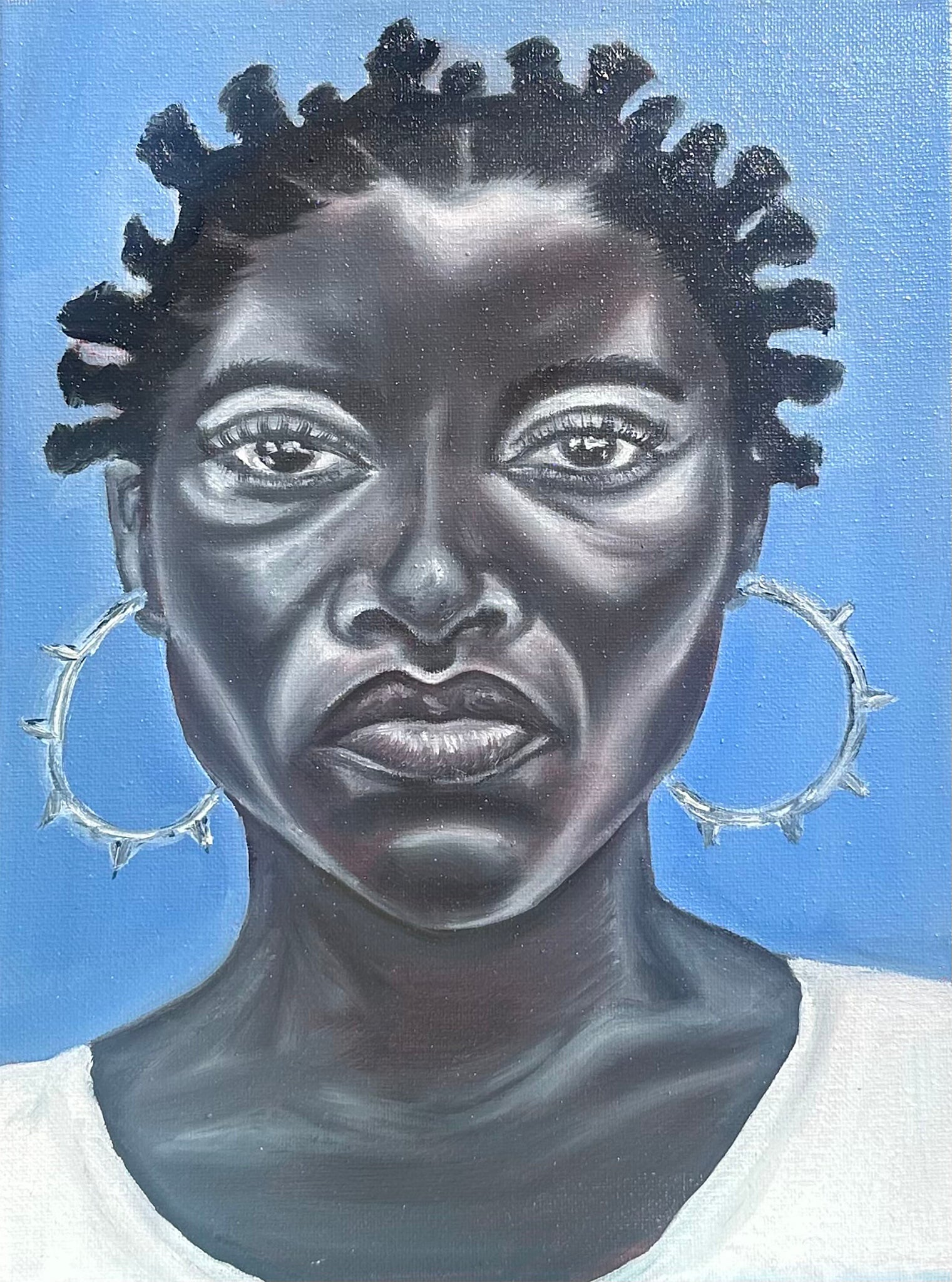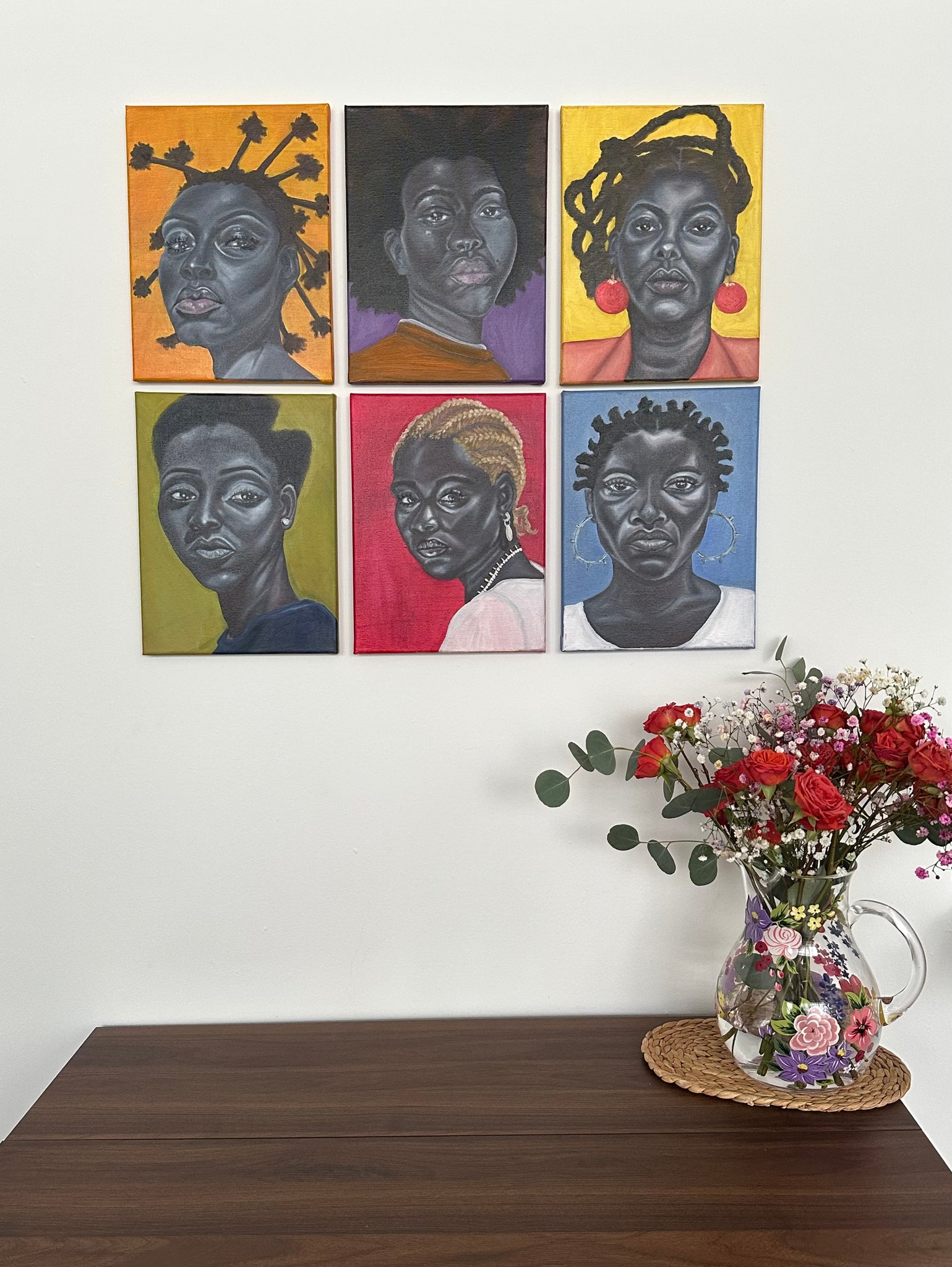 The goal of this collection is to capture Black women as self-possessed, poised, and soft yet fierce. Each portrait feels like a moment of tension between the viewer and the figure, as an interior moment has just been interrupted. As the viewer, you question whether to step in or step back, but the beauty and familiarity draws you in.